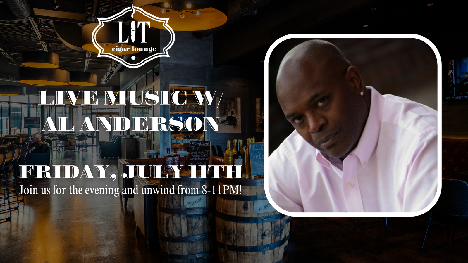 Join us for a LIT Saturday Night filled with great cigars, great music, and great company. Featuring live music from Dakota Pagan from 8-11PM!