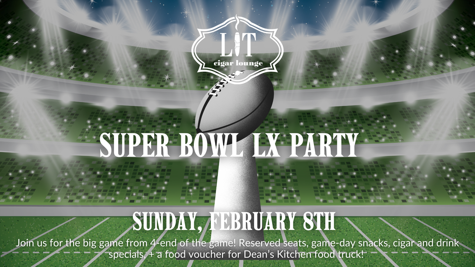 Super Bowl Sunday done right. Game on. Big screens, reserved seats, snacks, cigar & drink specials, and food from Dean’s Kitchen Food Truck. Join us at the lounge starting at 4PM. Purchase your tickets now on our website or through the Facebook event! Members $20 | Non-members $30