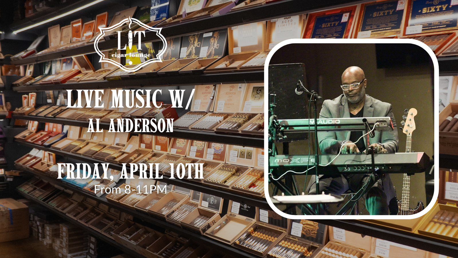 Kick off your Friday night the right way 🎵🔥 Set the vibe with premium cigars, a drink in hand, and an unbeatable crowd. Al Anderson will be bringing the sound live from 8-11PM, so come relax, light up, and enjoy an awesome night!