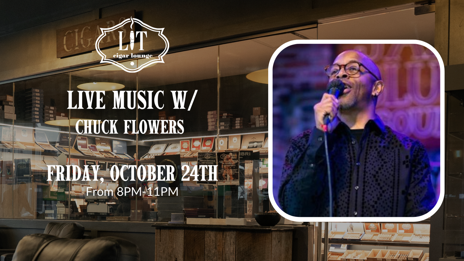 Join us for a LIT Friday Night filled with great cigars, great music, and great company. Featuring live music from Chuck Flowers from 8PM-11PM!
