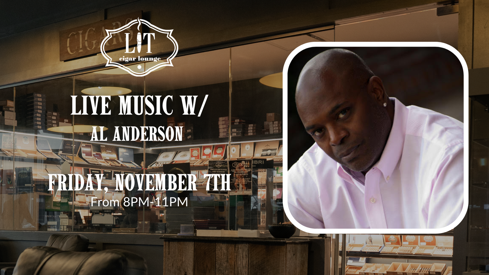 Join us for a LIT Friday Night filled with great cigars, great music, and great company. Featuring live music from Al Anderson from 8PM-11PM!