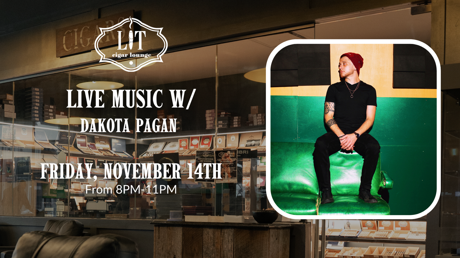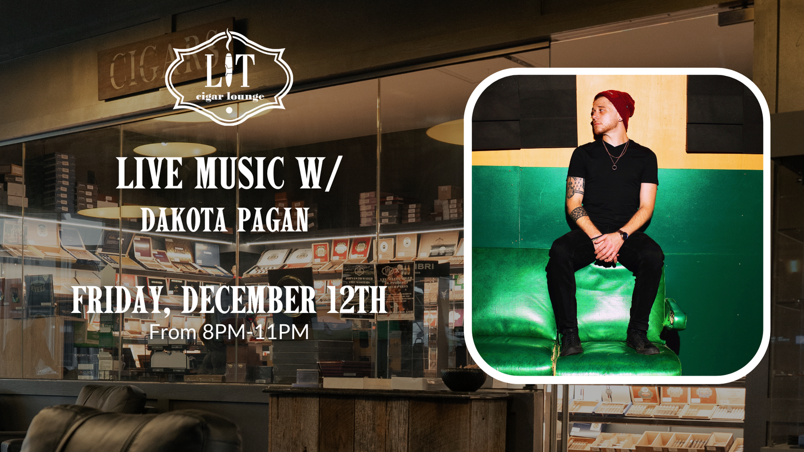 Join us for a LIT Friday Night filled with great cigars, great music, and great company. Featuring live music from Dakota Pagan from 8PM-11PM!