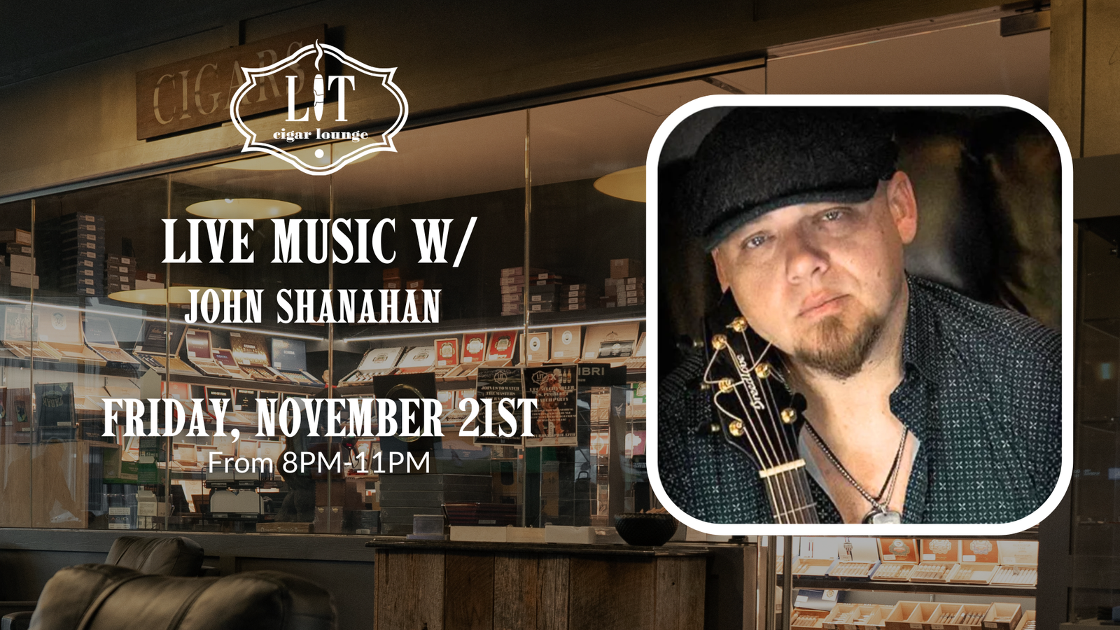 Join us for a LIT Friday Night filled with great cigars, great music, and great company. Featuring live music from John Shanahan from 8PM-11PM!