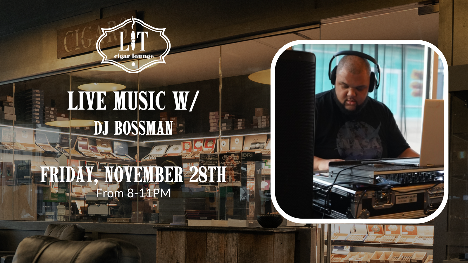 Join us for a LIT Friday Night filled with great cigars, great music, and great company. Featuring live music from DJ Bossman from 8-11PM!