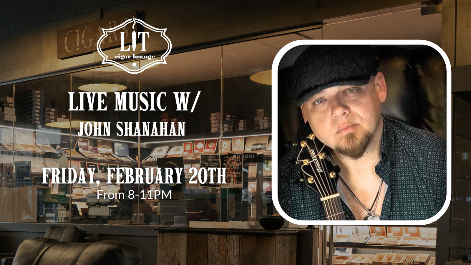 Join us for a LIT Friday Night filled with great cigars, great music, and great company. Featuring live music from John Shanahan from 8-11PM!